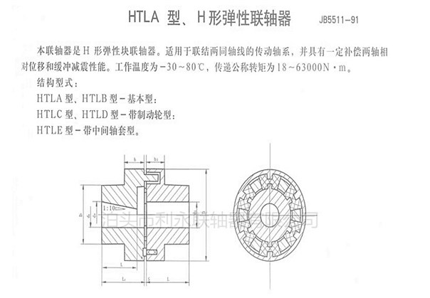 H形彈性塊聯軸器是利用若干個H表狀的彈性件,并將主、從動端半聯軸器的凸塊對應插入H形彈性件之間,以實現兩半聯軸器的聯接。