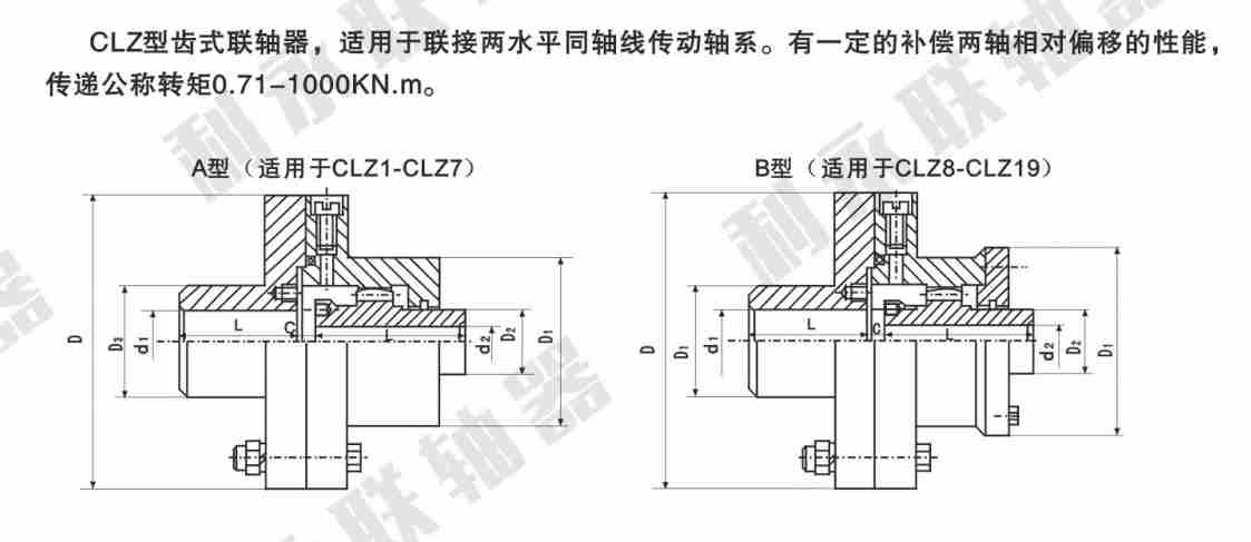 CLZ型齒式聯軸器特別適用于低速重載工況,如冶金、礦山、起重運輸等行 業、也適用于石油、化工、通用機械等各類機械的軸系傳動。