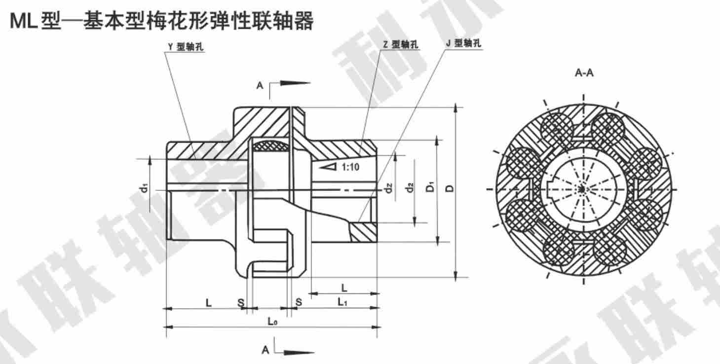 LM(ML)系列梅花形彈性聯軸器基本參數: